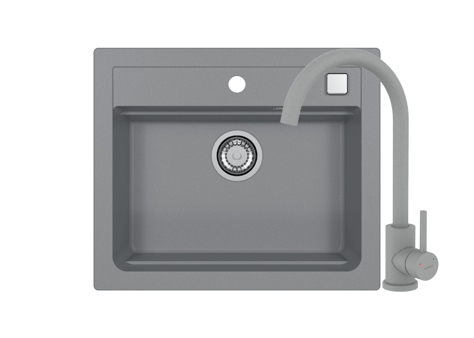 Acest model de chiuveta Alveus este incastrabil, conceput pentru montajul pe blatul de bucatarie, fiind parte continua a suprafetei de lucru. Intr-un decupaj apropiat ca si dimensiuni (57 x 48 cm), chiuveta se pozitioneaza pe blat din partea de sus si se fixeaza cu ajutorul clemelor furnizate.