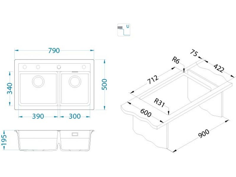 Dimensiune cuva (mm): 390*340*195, 300*340*140
