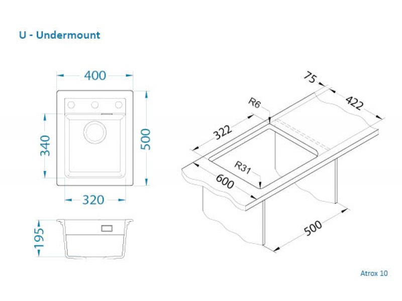 Chiuveta Alveus Atrox 10, formata dintr-o cuva cu dimensiunea de 34 x 32 x 19.5 cm, potrivita pentru spalarea vaselor. Aceasta chiuveta este confectionata dintr-un amestec compozit de calitate superioara, numit granital. Datorita procesarii atente a materialului, suprafata chiuvetei de bucatarie este neteda, placuta la atingere si permite o curatare usoara. In plus, ii ofera si alte avantaje, cum ar fi: rezistenta la temperaturi inalte, la utilizare intensa, rezistenta maxima la socuri termice si mecanice, nu se fisureaza si nu se zgarie.