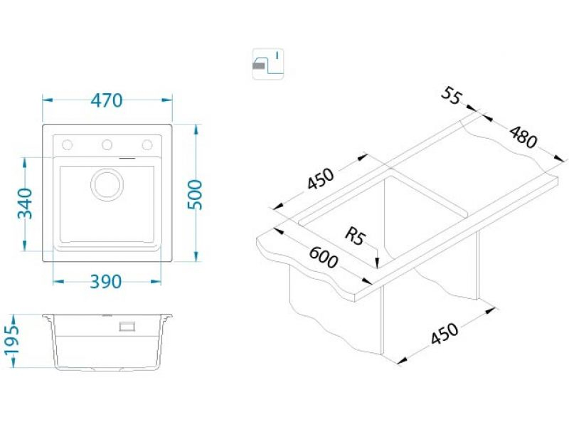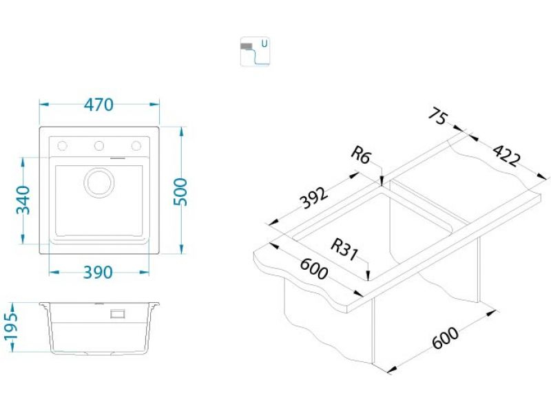 Dimensiune cuva (mm): 390 x 340 x 195mm