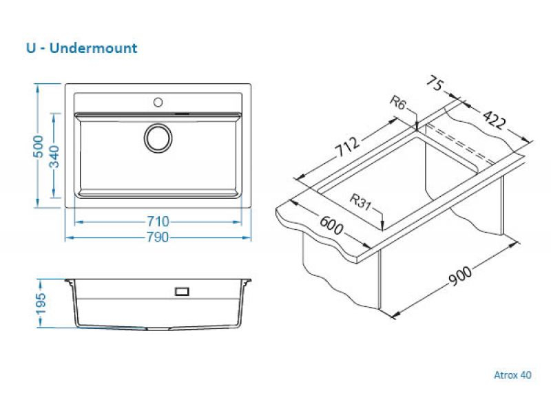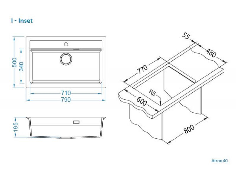 Dimensiune cuva (mm): 710 x 340 x 195mm
