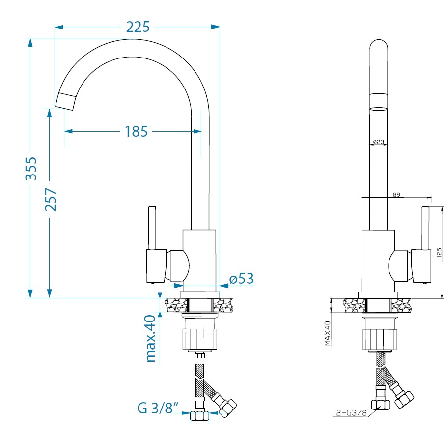 Dimensiunile acesteia sunt: 20.3 cm latime si 34 cm inaltime. Aceasta baterie Alveus poate fi montata pe chiuveta sau pe blatul de bucatarie si vine insotita de sistem prindere si racorduri flexibile.