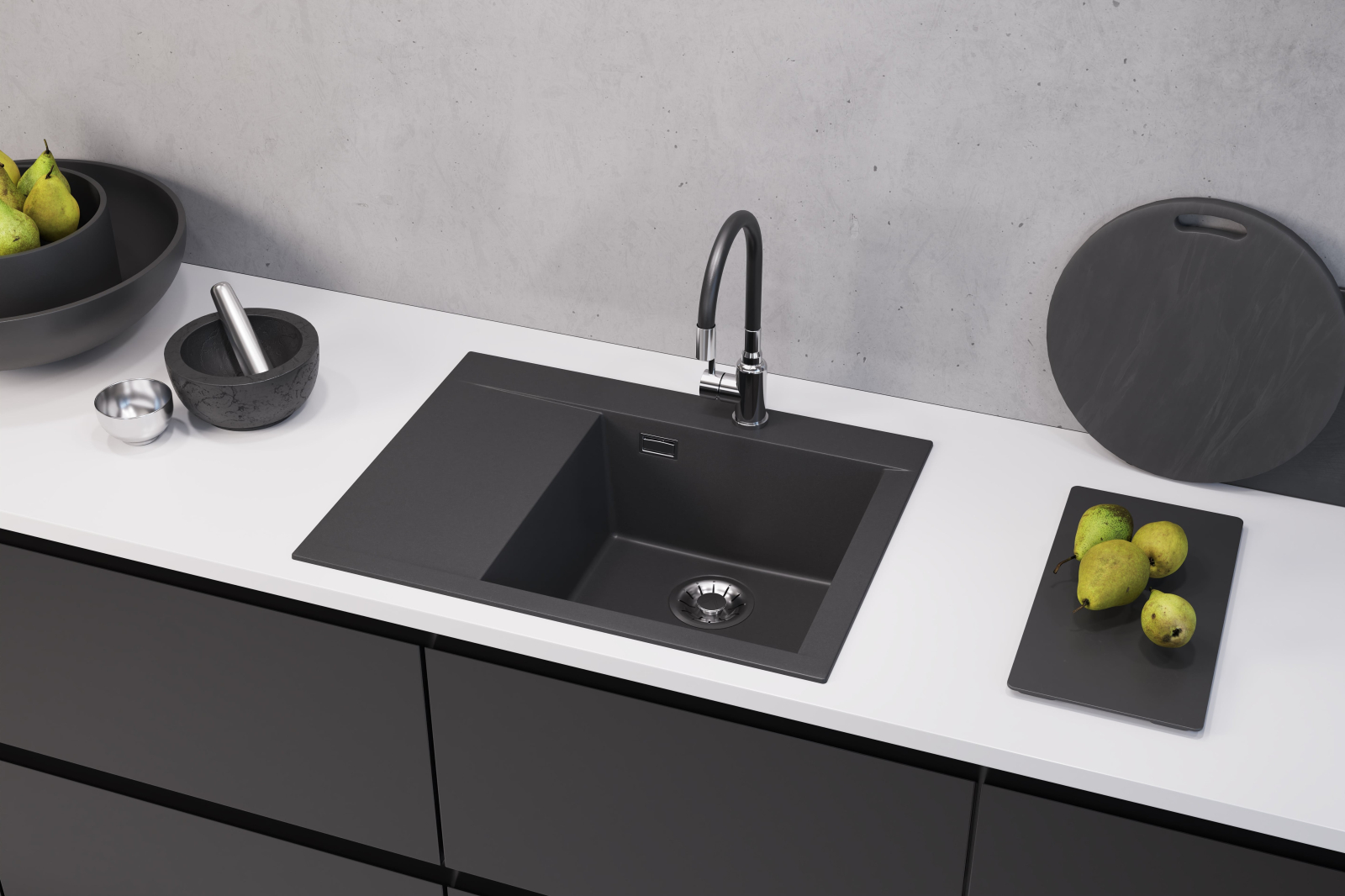 Alveus PURE-G 60 DREAPTA are o forma dreptunghiulara, cu dimensiunea cuvei de 40 x 40 x 19.8 cm , potrivite pentru spalarea vaselor de orice dimensiune. Aceasta chiuveta este confectionata dintr-un amestec compozit de calitate superioara, numit granital. Datorita procesarii atente a materialului, suprafata chiuvetei de bucatarie este neteda, placuta la atingere si permite o curatare usoara. In plus, ii ofera si alte avantaje, cum ar fi: rezistenta la temperaturi inalte, la utilizare intensa, rezistenta maxima la socuri termice si mecanice, nu se fisureaza si nu se zgarie.