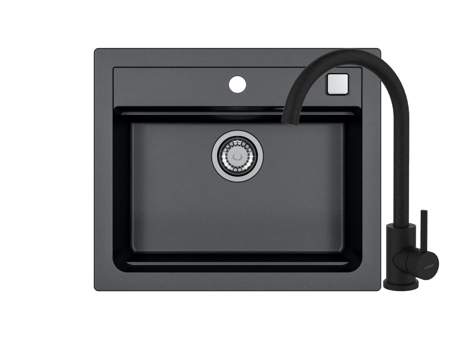 Acest model de chiuveta Alveus este incastrabil, conceput pentru montajul pe blatul de bucatarie, fiind parte continua a suprafetei de lucru. Intr-un decupaj apropiat ca si dimensiuni (57 x 48 cm), chiuveta se pozitioneaza pe blat din partea de sus si se fixeaza cu ajutorul clemelor furnizate.